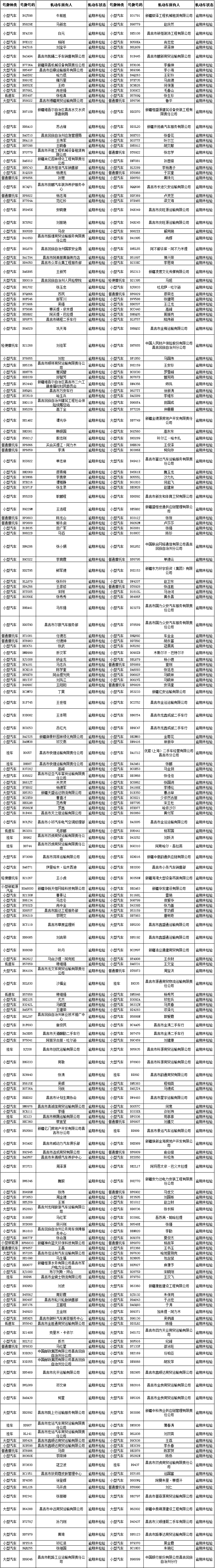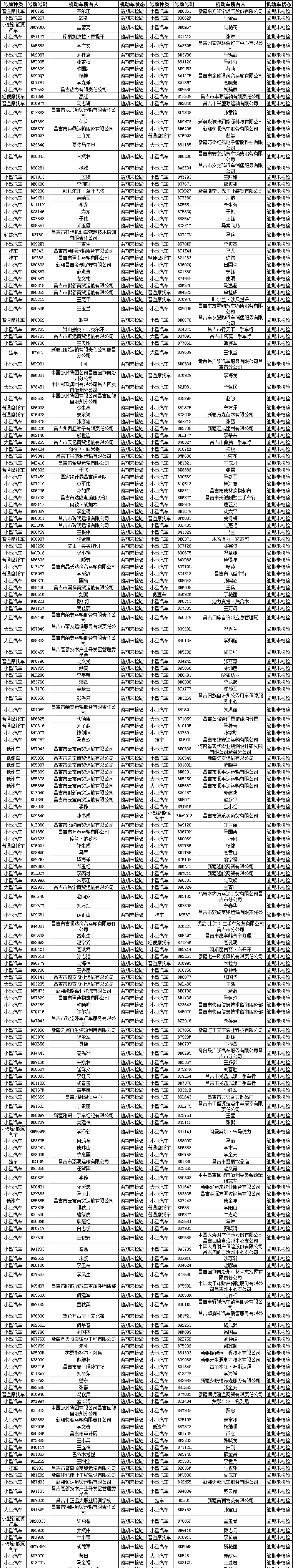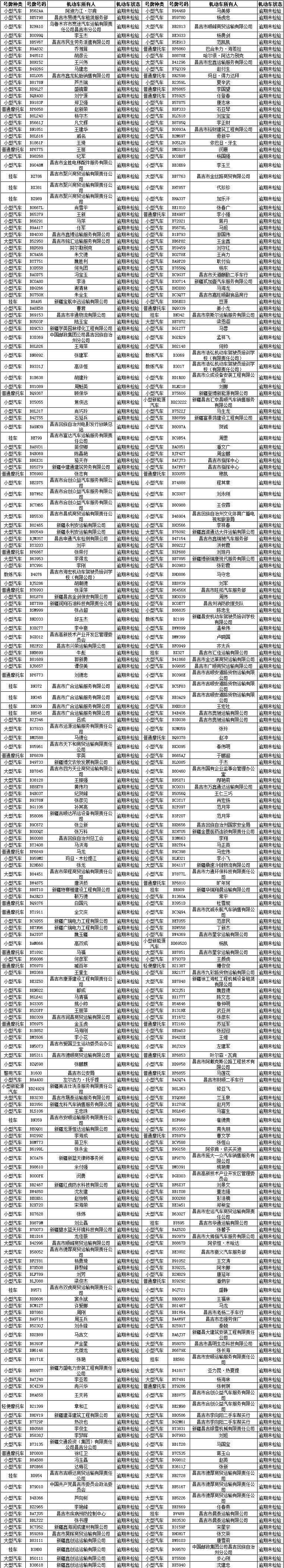 昌吉市交警大队车辆逾期未检验名单公示