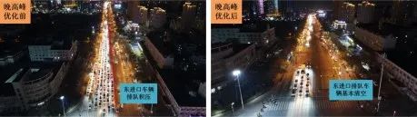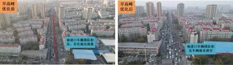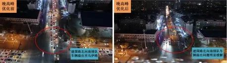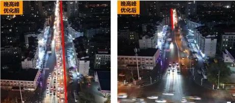 经过此次优化调整后,绿洲路与建国路交叉路口早高峰时段北向南方向排队积压车辆大幅减少由优化前排队长度300米减少至130米;晚高峰时段排队长度由450米减少至160米,四个方向排队车辆均可在1-2个周期内通过路口,南北方向车流交织、直行与左转车辆冲突问题得到明显缓解,达到预期优化效果。