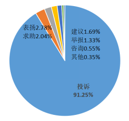 8.党务政务类(90件,占比3.53%)。主要涉及工作人员政务效能相关问题(态度不好或者表扬)。