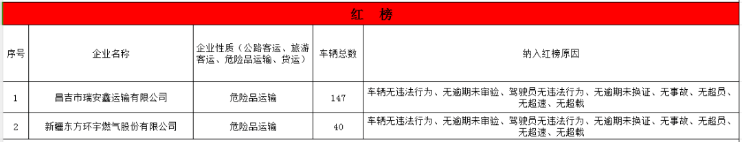 昌吉市10月份“两客一危一货”企业“红黑榜”