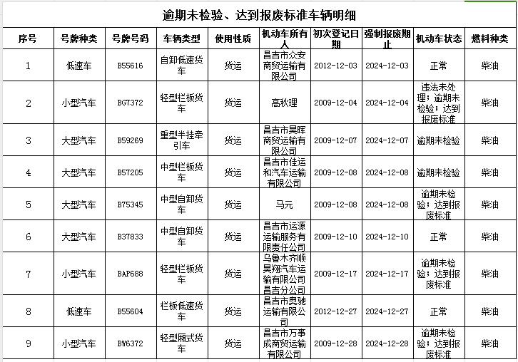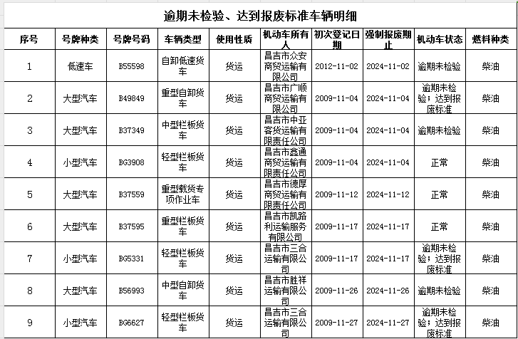 | 名 称 | 这些车逾期未检、未报废 请尽快处理! | ||