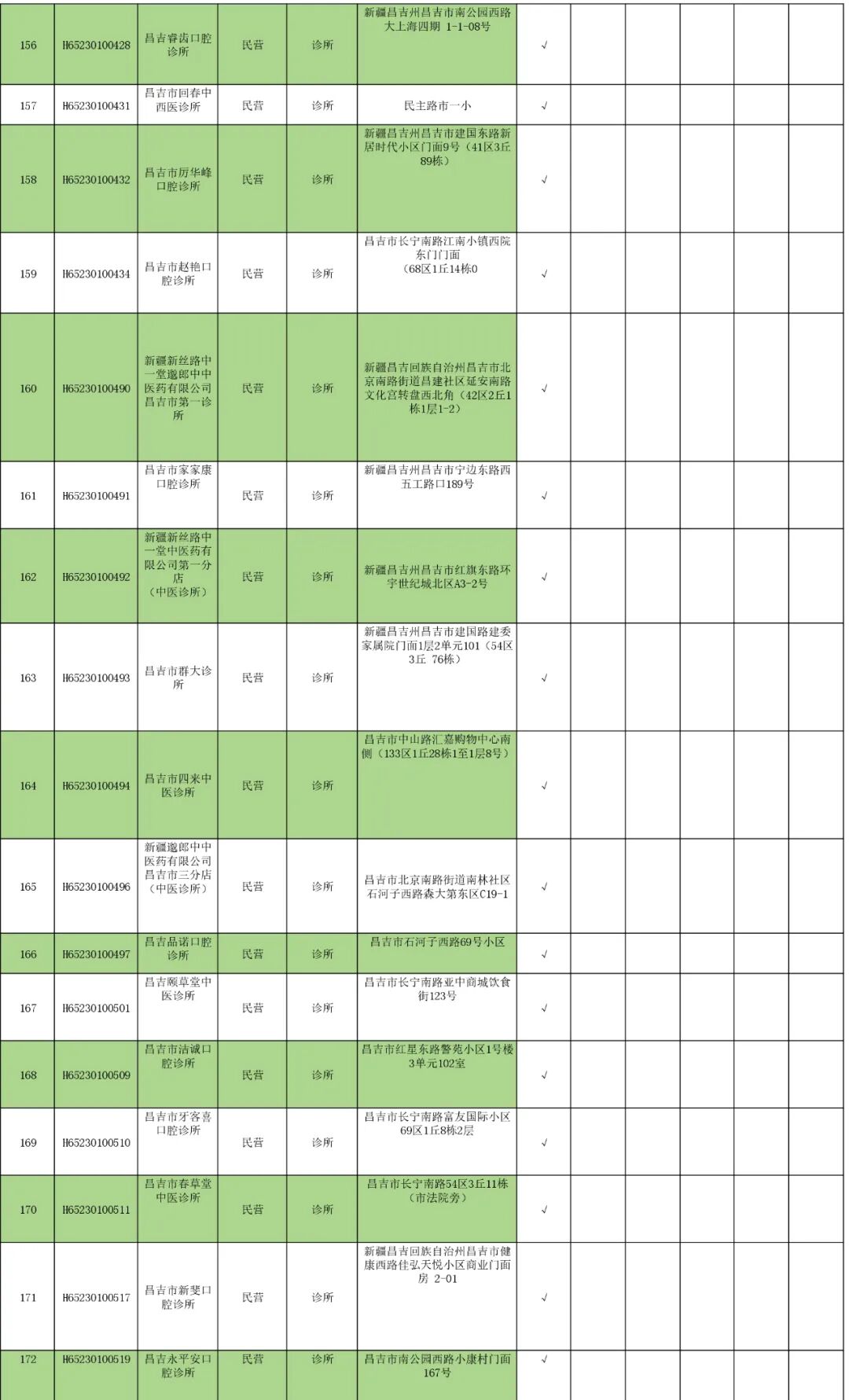 昌吉市(含州本级)医保定点医药机构名单