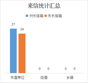 州长信箱:本月共收到各类信件27件,均已办结,其中转办26件、直接办结答复1件。市长信箱:本月共收到各类信件24件均已办结,其中转办15件、直接办结答复9件。