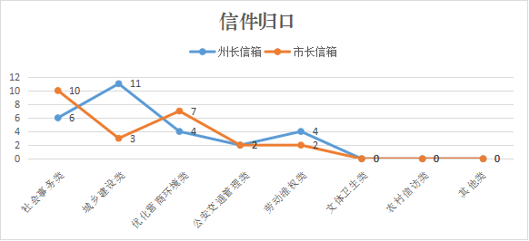 2.城乡建设类(11件),主要为水电气暖服务不佳6件、道路规划5件。