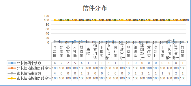 图为各县市(园区)、州直单位来信数量、占比及信件按期办结情况。