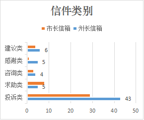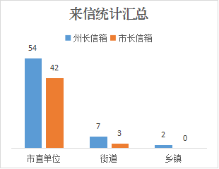 州长信箱:本月共收到各类信件63件,均已办结,其中转办62件、直接办结答复1件。市长信箱:本月共收到各类信件45件,均已办结,其中转办39件、直接办结答复6件。