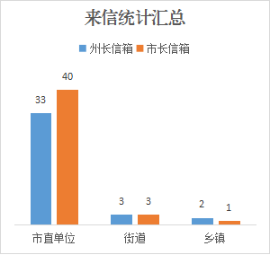 州长信箱:本月共收到各类信件38件,均已办结,其中转办36件、直接办结答复2件。市长信箱:本月共收到各类信件44件,均已办结,其中转办40件、直接办结答复4件。
