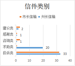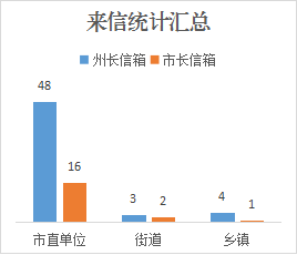 州长信箱:本月共收到各类信件57件,均已办结,其中转办件55件、直接办结答复2件。市长信箱:本月共收到各类信件40件,均已办结,其中转办19件、直接办结答复21件。