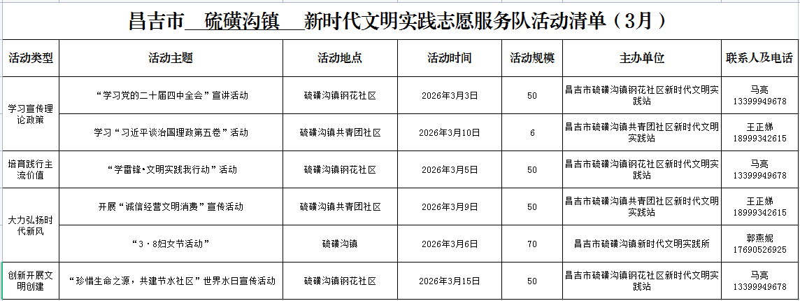 硫磺沟镇新时代文明实践志愿服务队活动清单(3月)