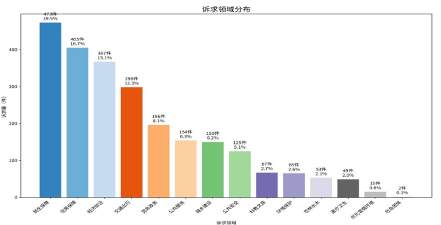 4.交通出行(298件,占比12.3%)。主要涉及公共交通服务、道路设施、车辆管理等问题。