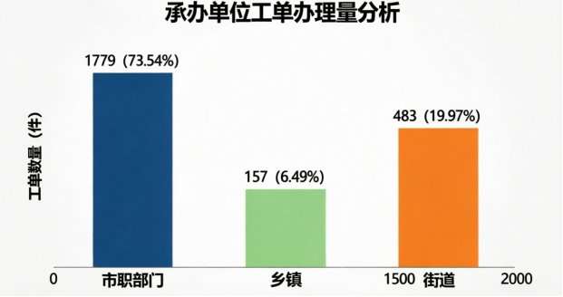 2026年2月1日至2月28日,昌吉市12345政务服务便民热线转办诉求2419件。截至3月31日,已办结2419件,按期签收率100%,按期办结率100%,群众满意度92.04%。较上月办件减少1522件,同比下降38.62%。工单数量较多的单位为:公安局276件(同比下降44.47%),市场监督管理局260件(同比下降31.58%),城市管理局223件(同比下降48.38%),住房和城乡建设局205件(同比下降67.67%),人力资源和社会保障局156件(同比下降24.27%)。