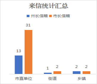 州长信箱:本月共收到各类信件16件,均已办结,其中转办16件。市长信箱:本月共收到各类信件35件均已办结,其中转办30件、直接办结答复5件。