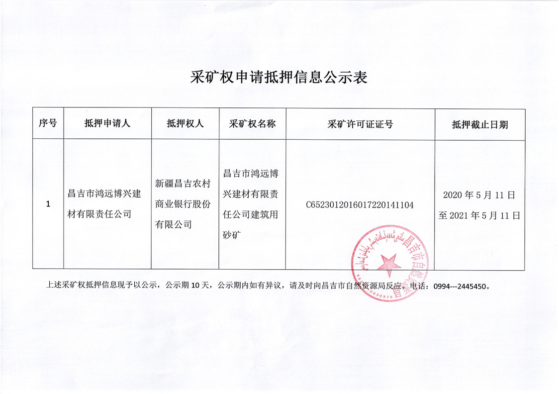 | 名 称 | 【采矿权抵押】采矿权申请抵押信息公示表 | ||