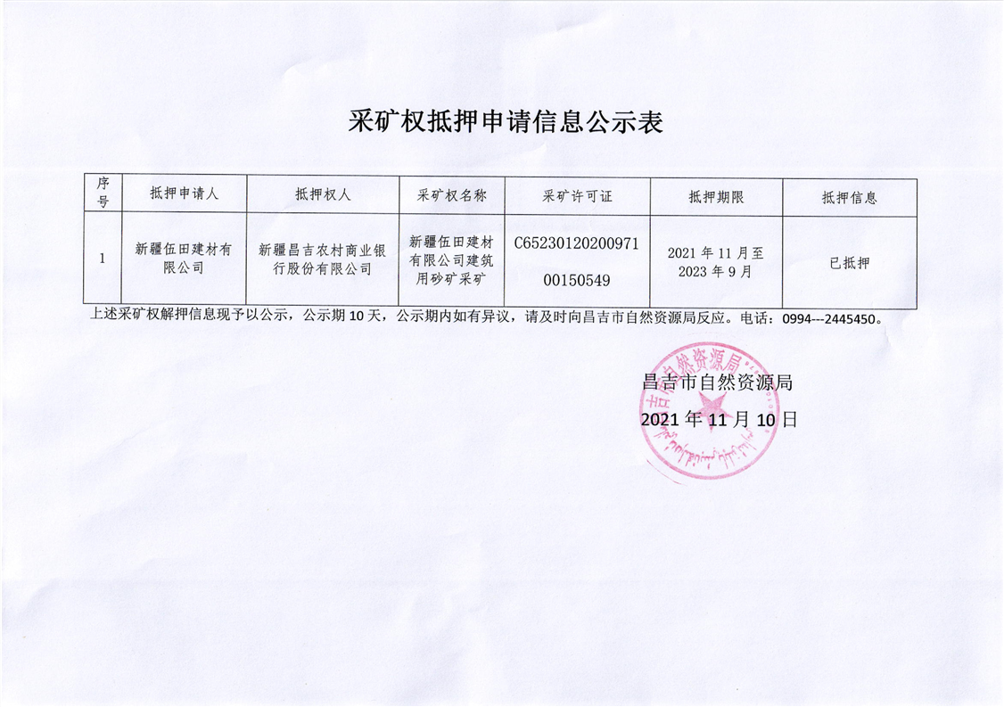 | 名 称 | 【采矿权抵押】申请采矿权抵押信息公示表 | ||