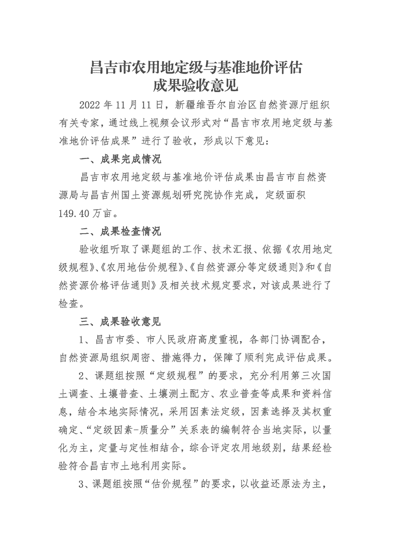 | 名 称 | 【地价信息】昌吉市农用地定级与基准地价评估成果验收意见 | ||