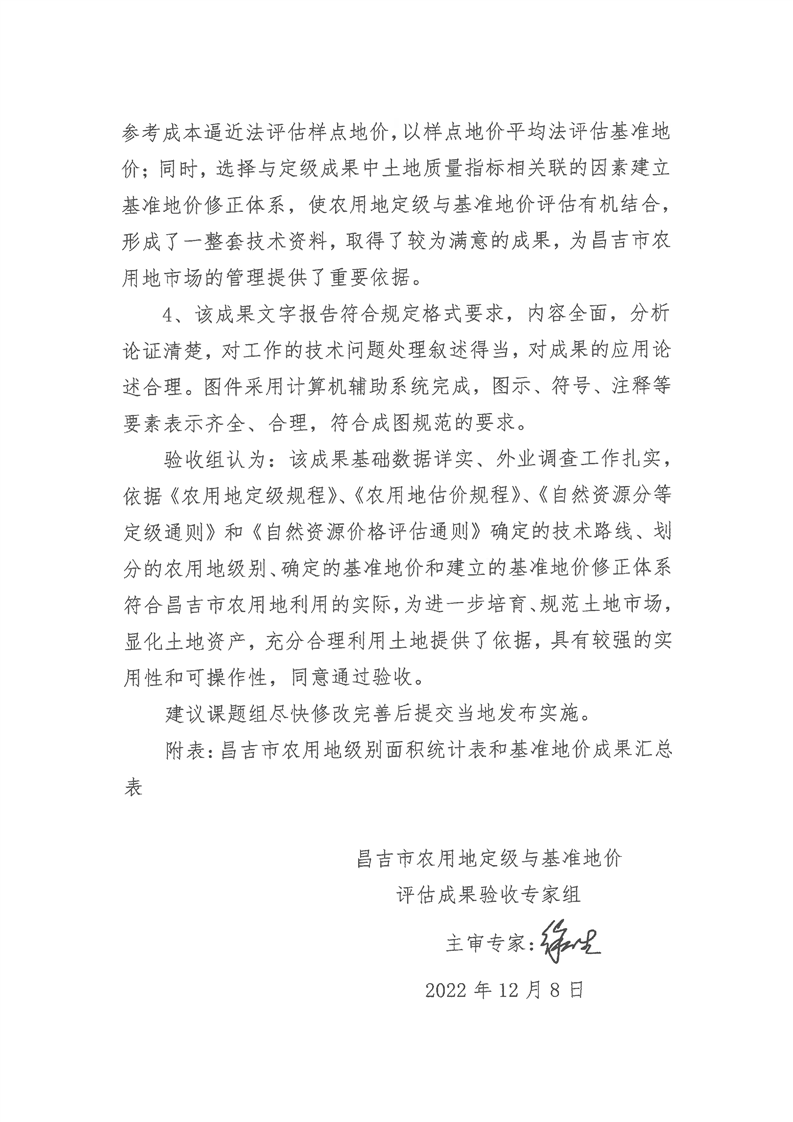 【地价信息】昌吉市农用地定级与基准地价评估成果验收意见