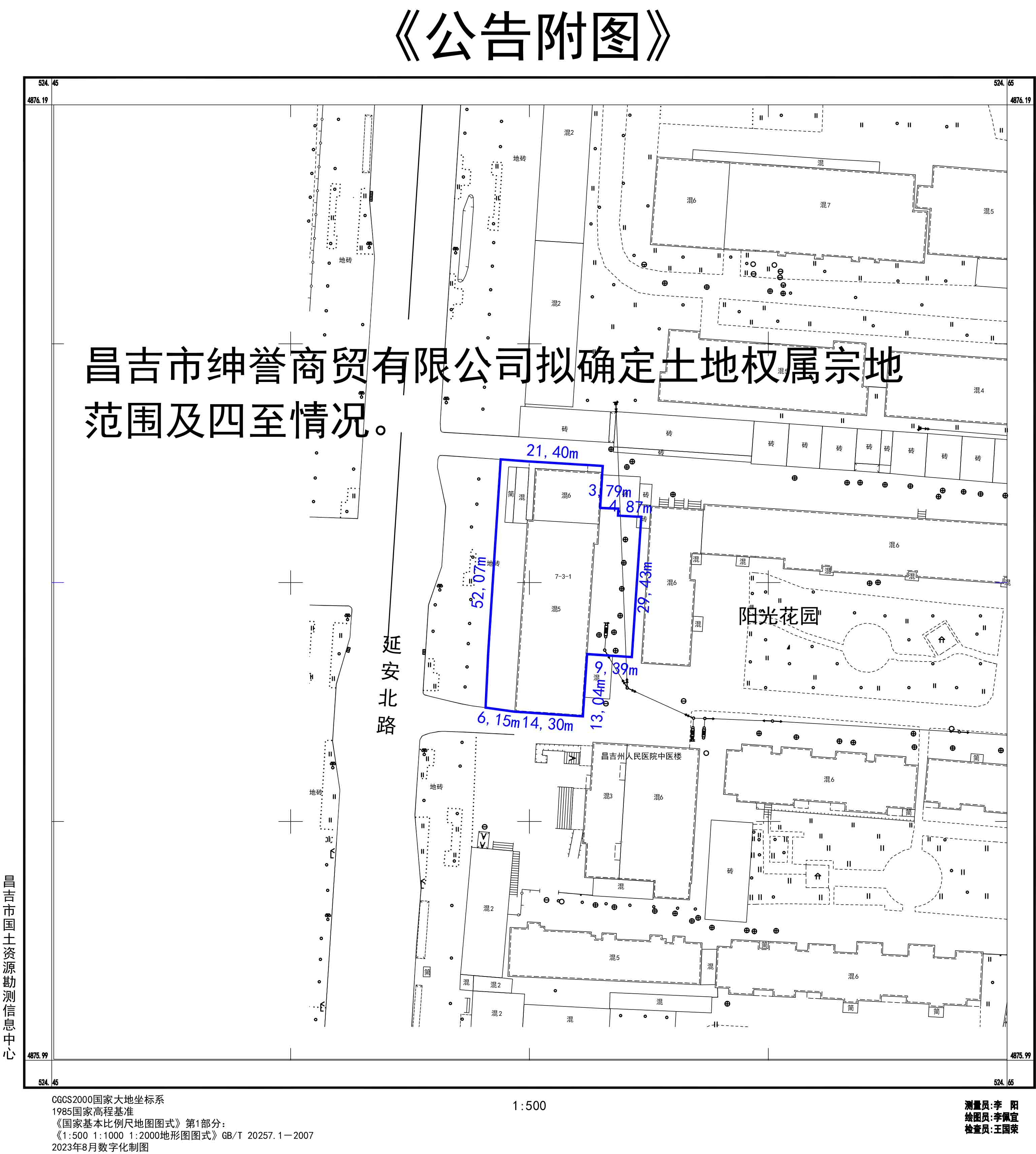 昌吉市绅誉商贸有限公司于2023年2月向我局提交了《关于确定土地所有权人的申请》,申请对位于延安北路7区3丘1栋中昌市房字第00214275号房产产权对应的土地的使有权进行确权。