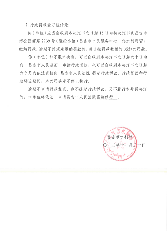 昌吉市水利局水行政处罚决定书(昌市)罚决字【2025】06号