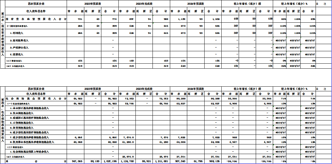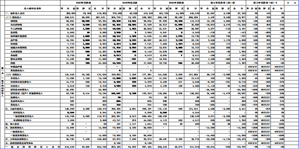 2023年收入预算执行情况及2024年财政收入预算(草案)汇总表