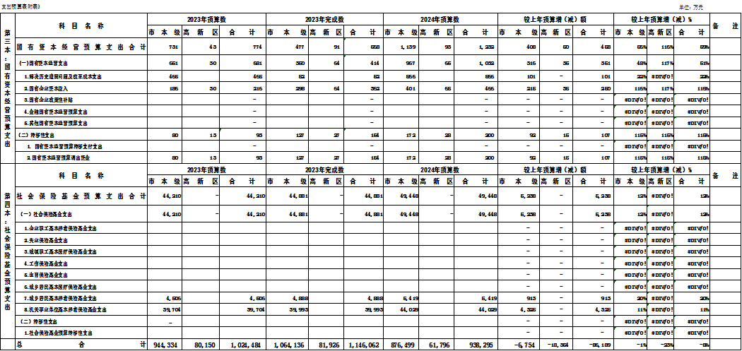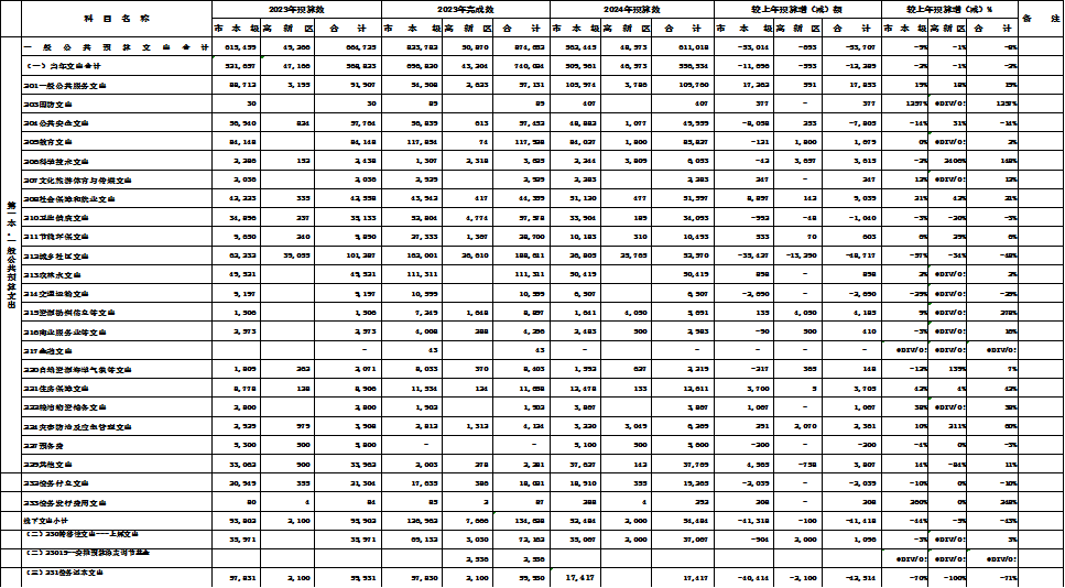 2023年支出预算执行情况及2024年财政支出预算(草案)汇总