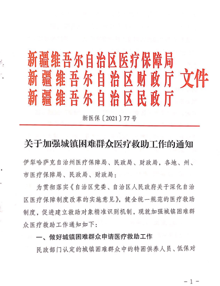 | 来 源 | 自治区医疗保障局、自治区财政厅、自治区民政厅 | ||