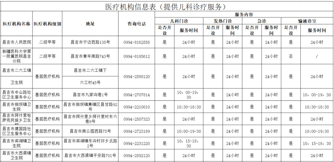 | 名 称 | 昌吉市医疗机构儿科诊疗服务信息公开 | ||