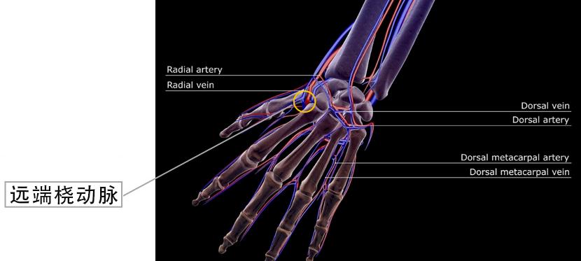 远端穿刺:经远端桡动脉穿刺点位于桡动脉远端,保留了近端桡动脉的完整性。即使远端桡动脉发生闭塞,也不会影响近端桡动脉的血流。
