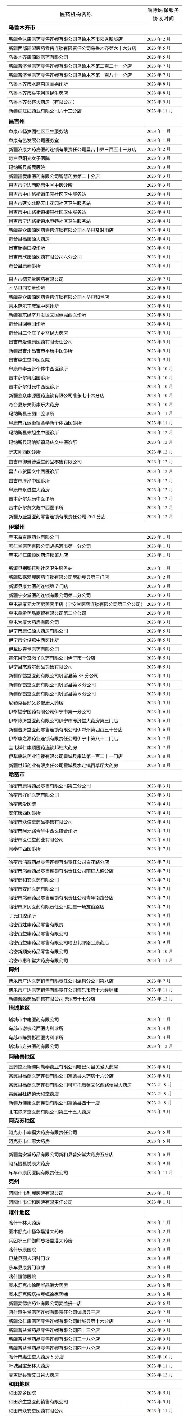 关于2023年新疆维吾尔自治区解除医保服务协议医药机构名单的公告