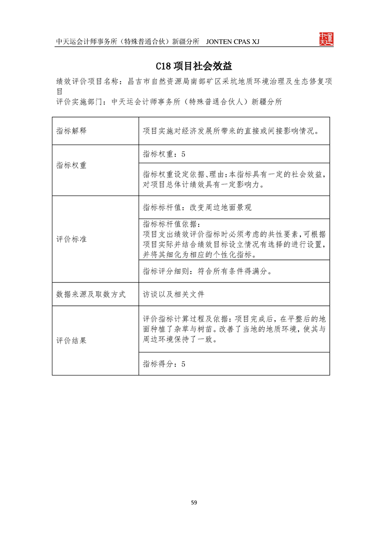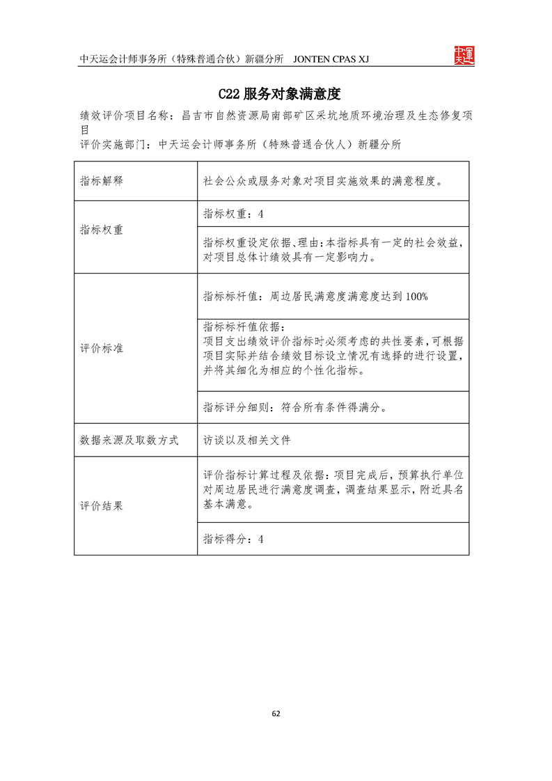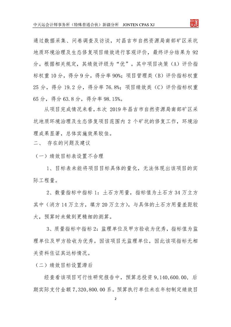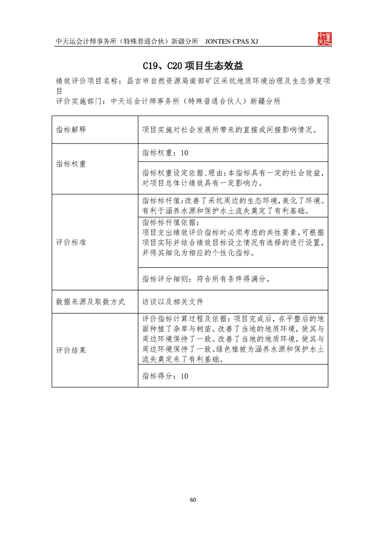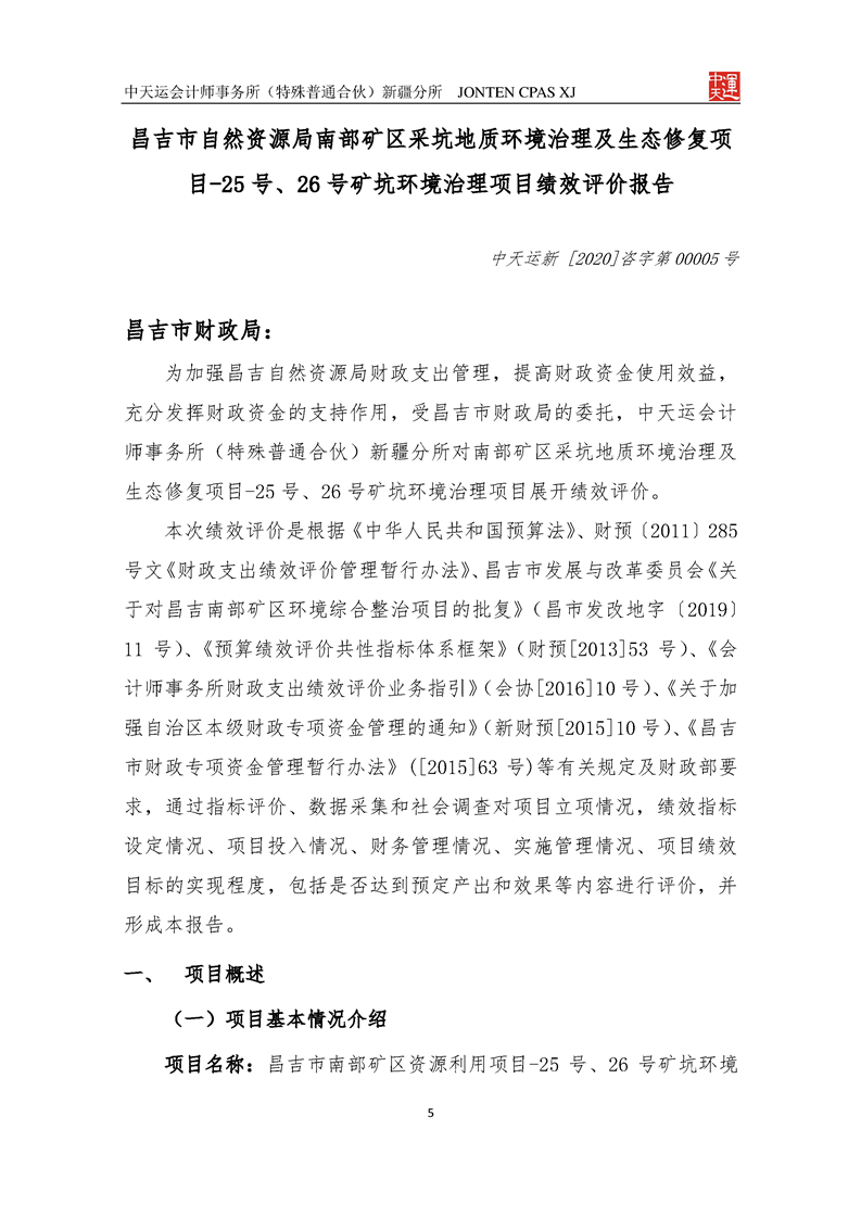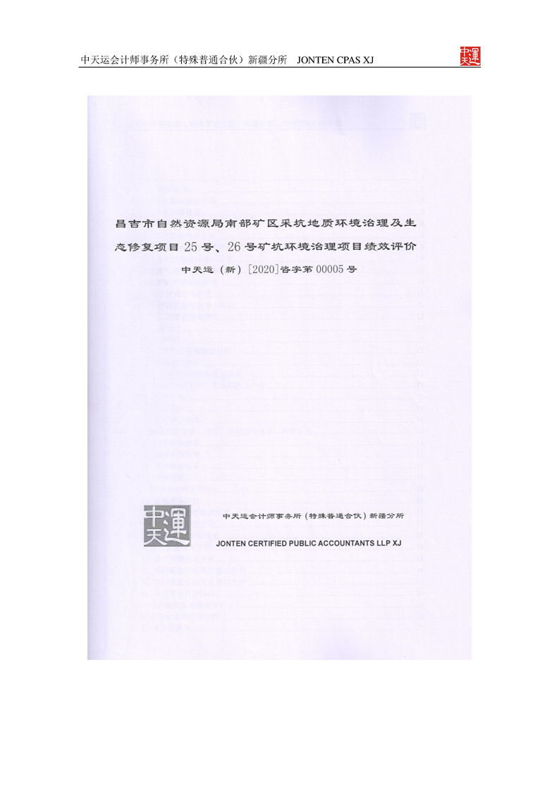 | 名 称 | 昌吉市自然资源局南部矿区采坑地质环境治理及生态修复项目绩效评价报告 | ||