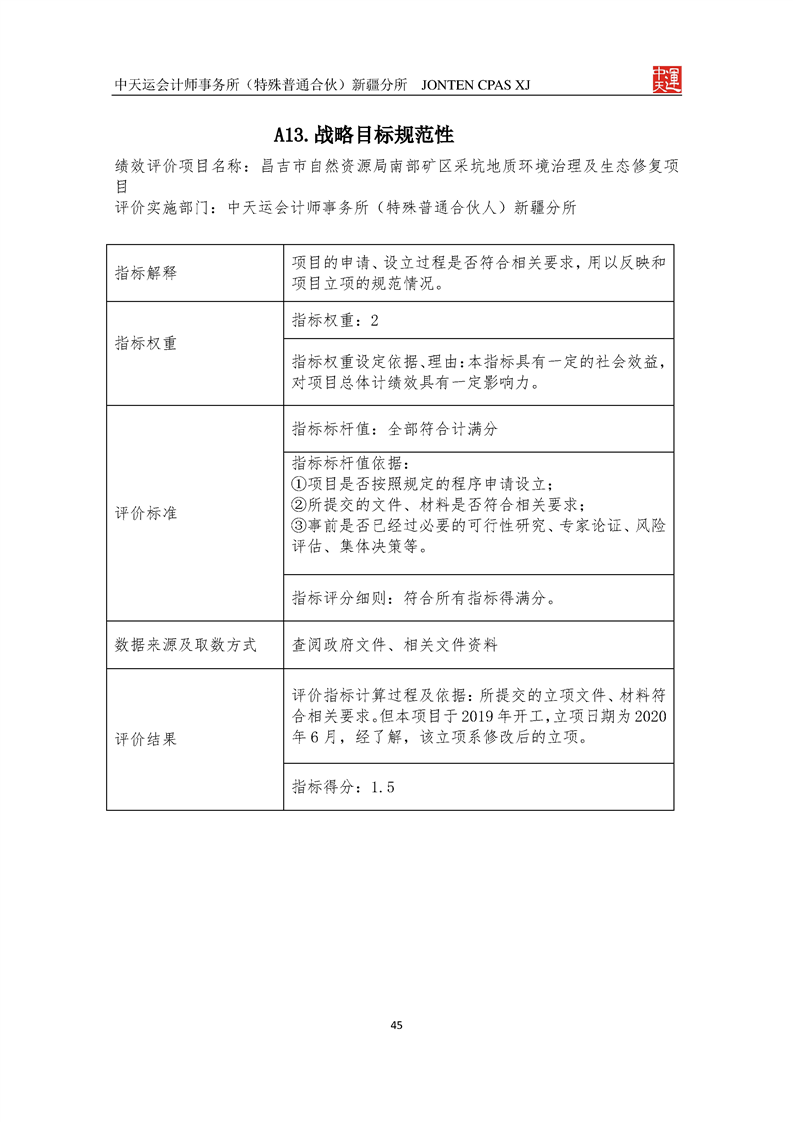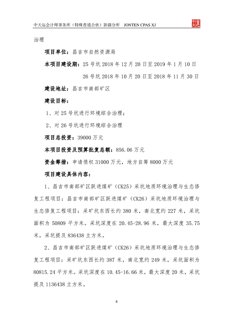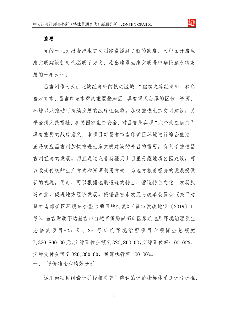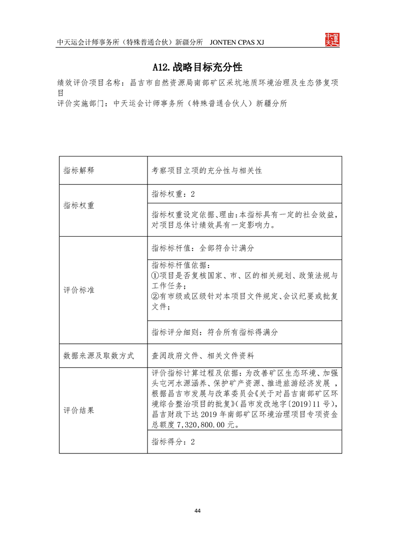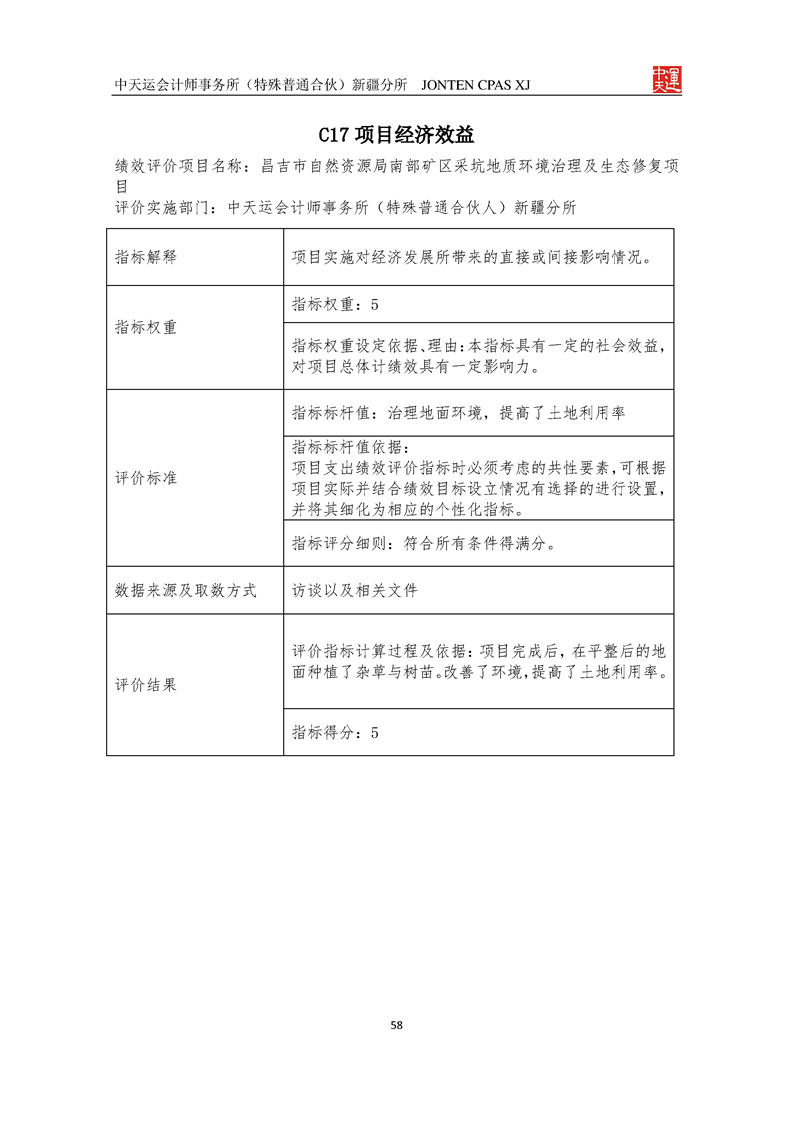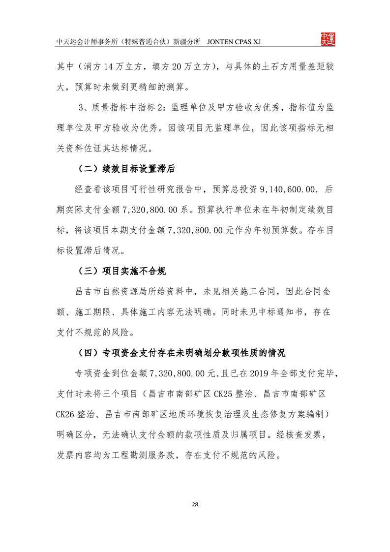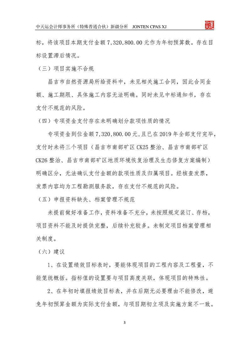 | 名 称 | 昌吉市自然资源局南部矿区采坑地质环境治理及生态修复项目绩效评价报告 | ||