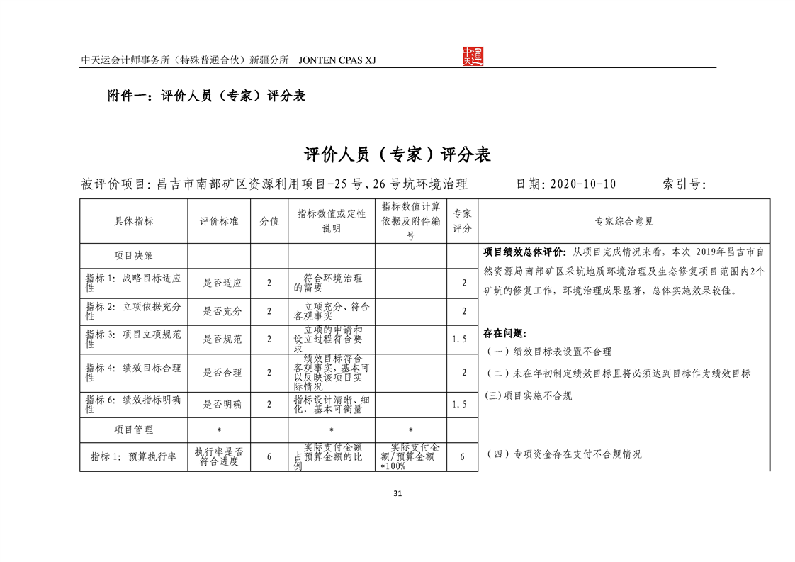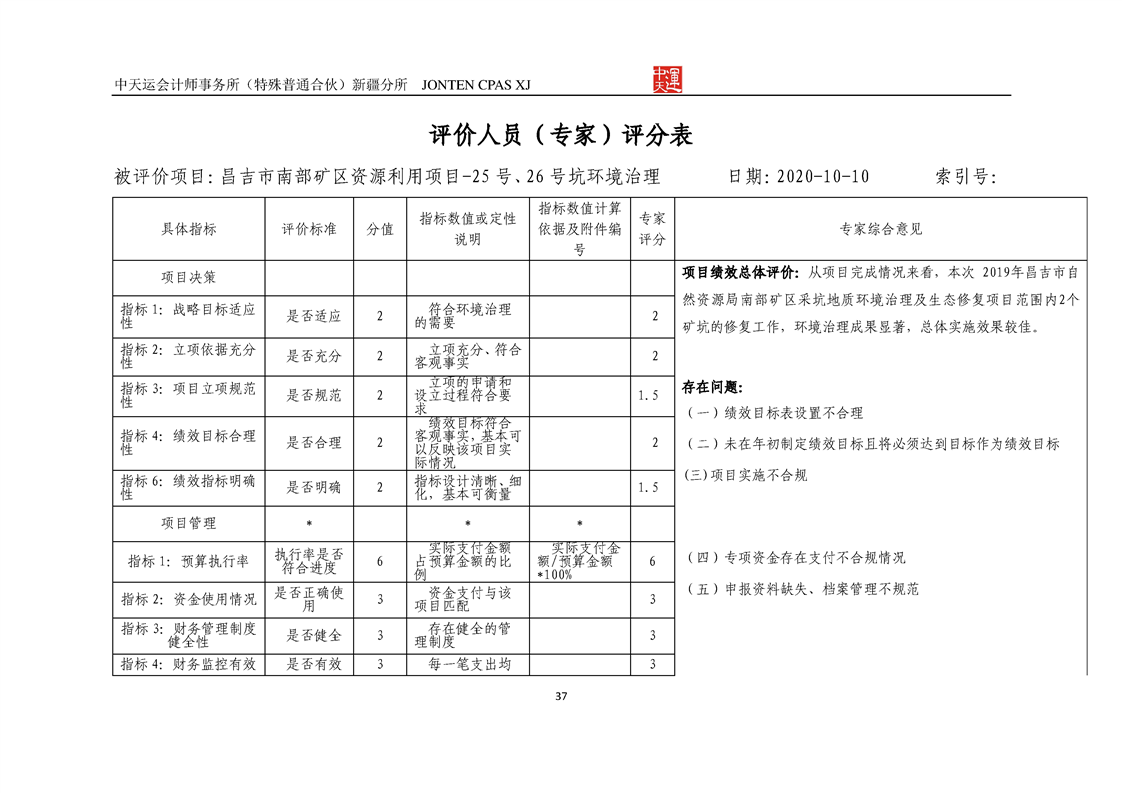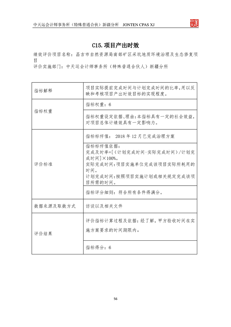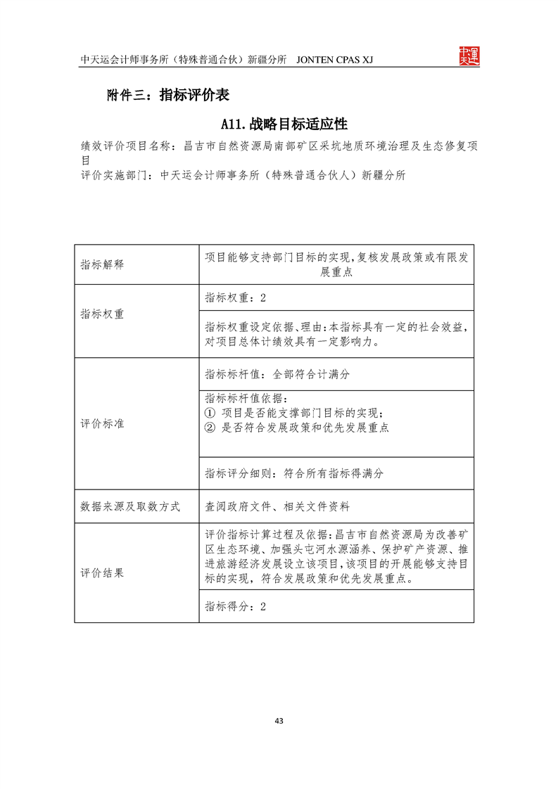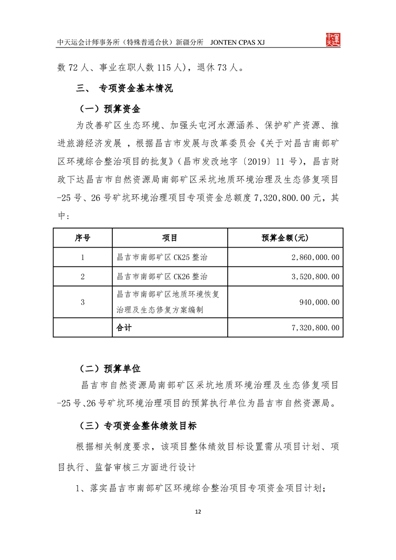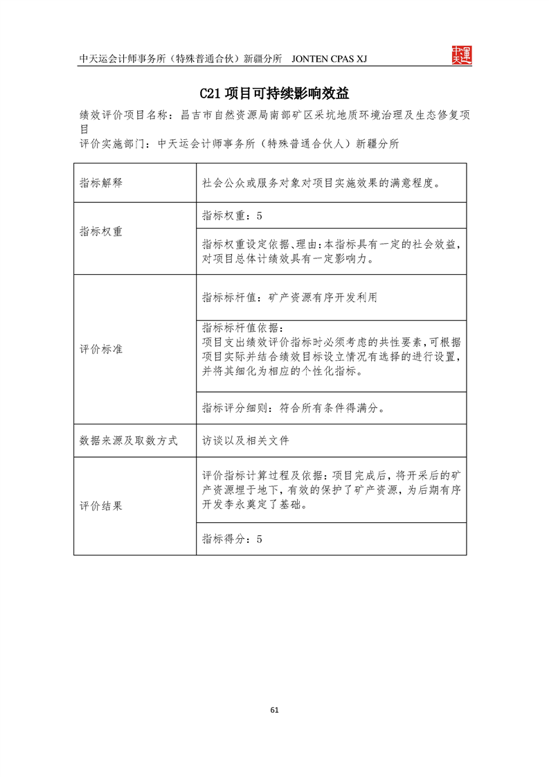 | 名 称 | 昌吉市自然资源局南部矿区采坑地质环境治理及生态修复项目绩效评价报告 | ||