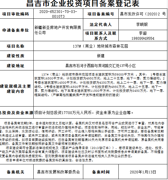 | 文 号 | 昌市发改许可【2020】2号 | 主 题 词 | 137 商业 地块 城市 森林 花园 |