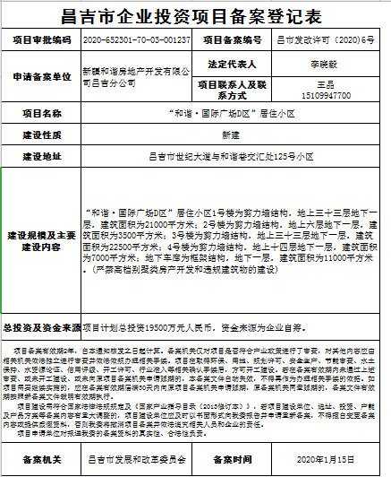 | 文 号 | 昌市发改许可【2020】6号 | 主 题 词 | 和谐 国际 广场 居住小区 |