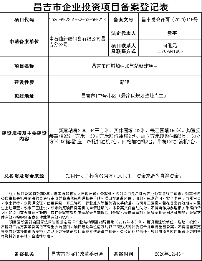 | 文 号 | 昌市发改许可(2020)115号 | 主 题 词 | 昌吉市 市南 南城 加油 新建 |
