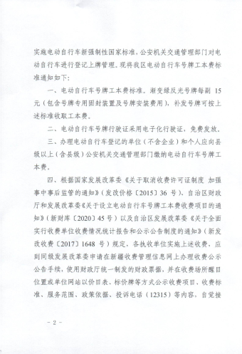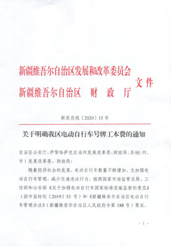 | 文 号 | 新发改规【2020】15号 | 主 题 词 | 电动自行车 车号 工本费 的通知 |
