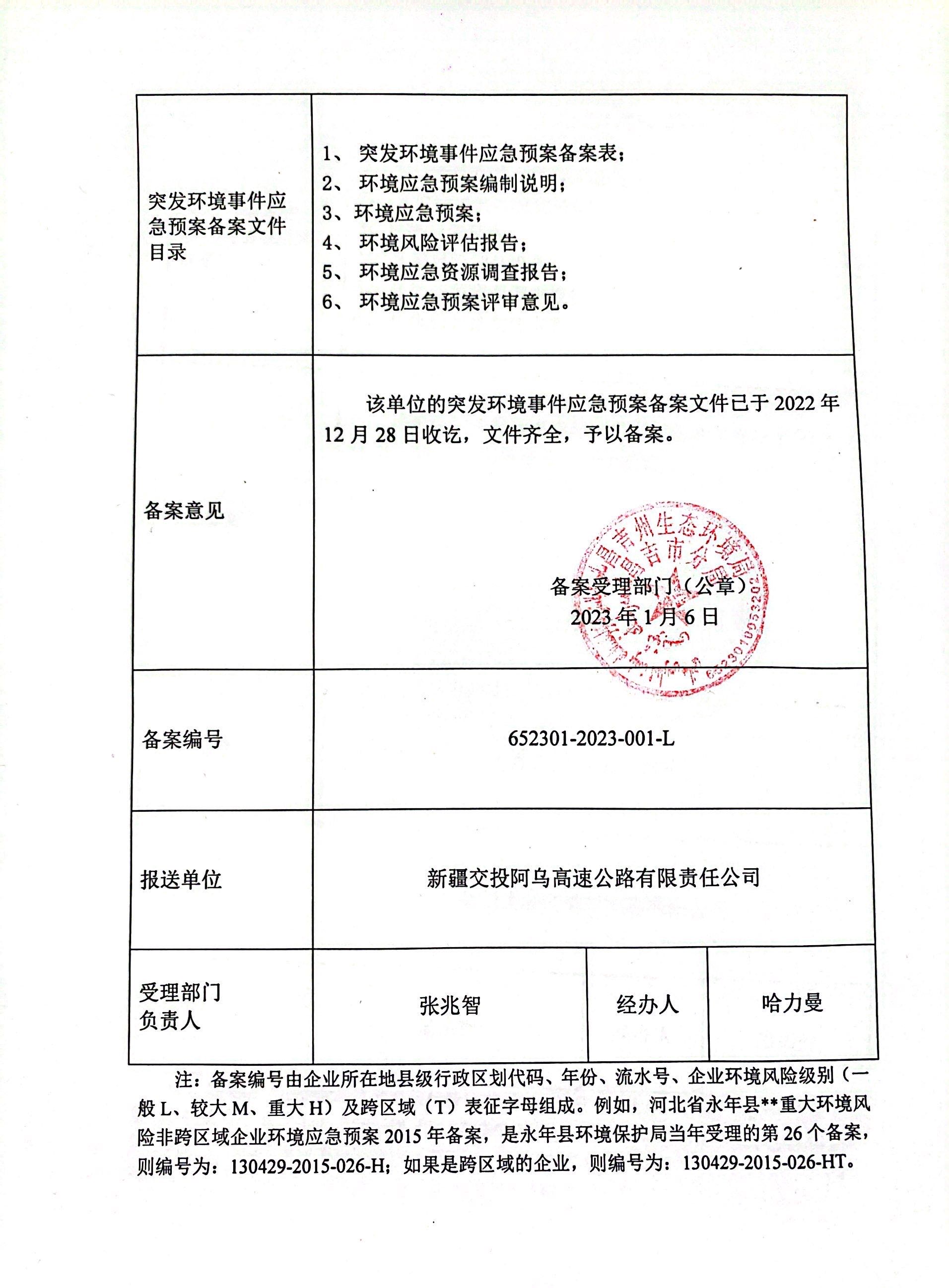 应急预案备案公示2023-001