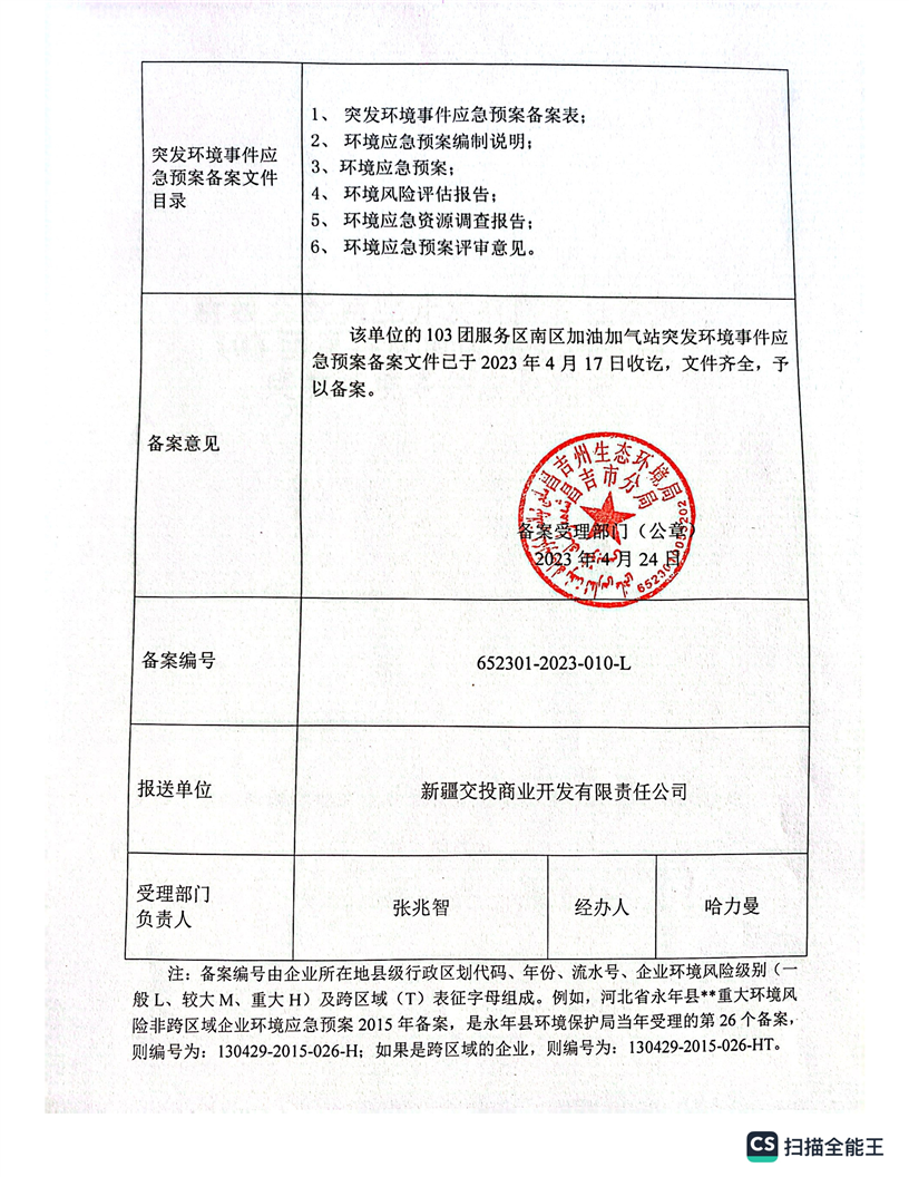 | 名 称 | 应急预案备案公示2023-010 | ||