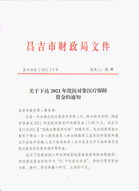 | 名 称 | 关于下达2021年优抚对象医疗保障资金的通知 | ||