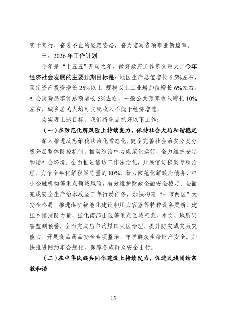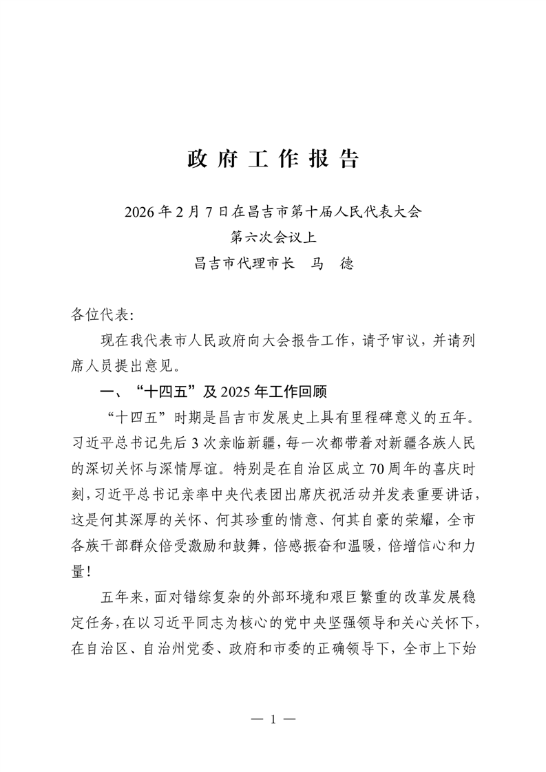 | 名 称 | 昌吉市人民政府2026年政府工作报告 | ||