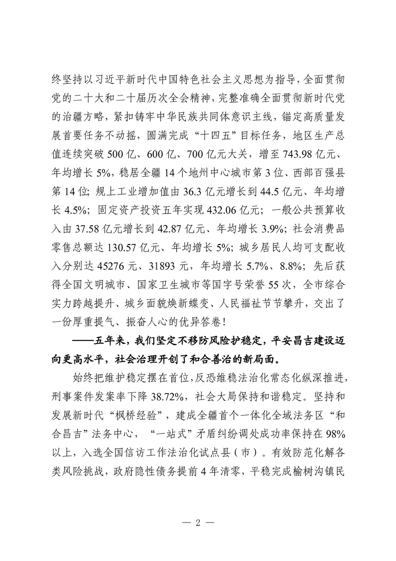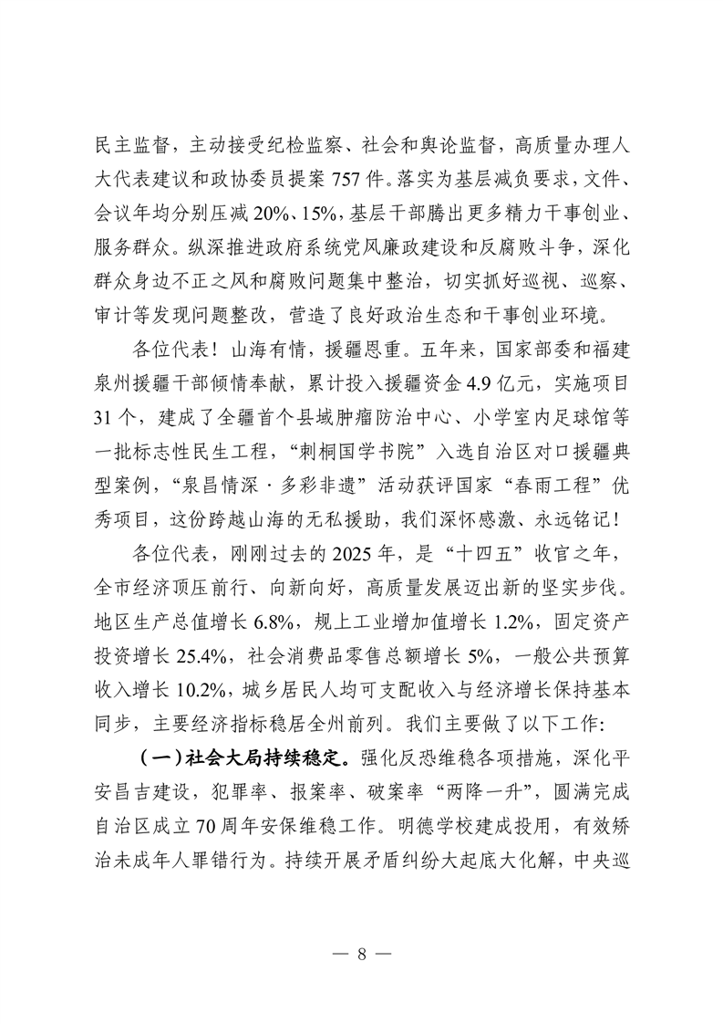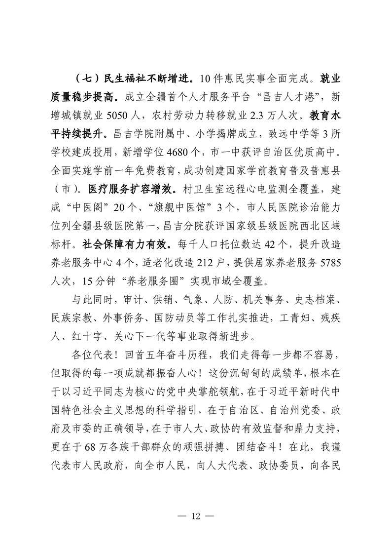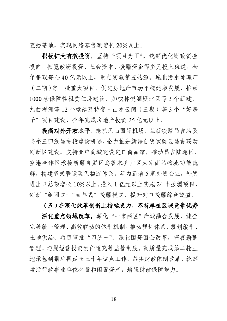 昌吉市人民政府2026年政府工作报告