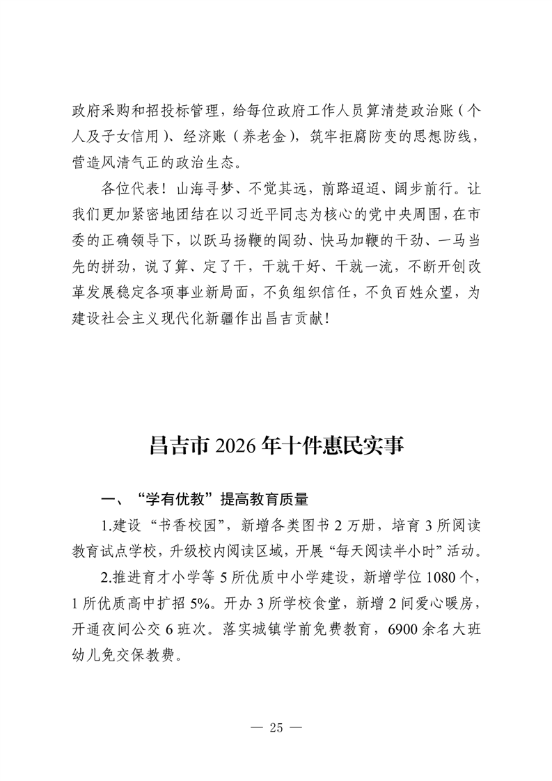 | 文 号 | 主 题 词 | 昌吉市 人民政府 2026 政府工作 工作报告 | |