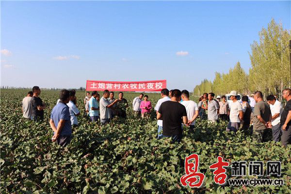 州政务服务和公共资源交易管理局驻玛纳斯县土炮营村“访惠聚”工作队把农牧民夜校办到田间地头。