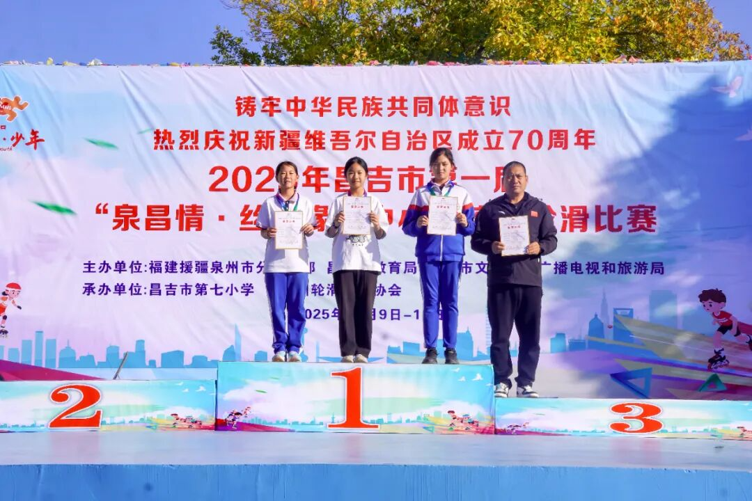 10月10日至11日,昌吉市第一届“泉昌情·丝路缘”中小学校园轮滑比赛在市第七小学运动场进行,来自全市各中小学的轮滑爱好者齐聚一堂,在滑行中比拼技巧、传递快乐,展现青少年昂扬向上的精神风貌。