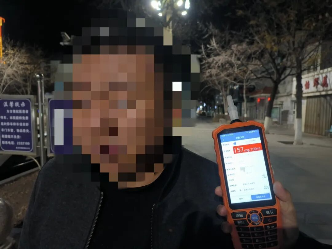 2025年11月15日03时,昌吉市交警在延安健康路口查获号牌为新B****7小型普通客车,驾驶员涉嫌酒后驾驶,民警现场对其进行呼气式酒精检测仪检测,值为157mg/100mL,属于醉酒驾驶。随后将其带至昌吉市医院进行血液检测。目前,该案件正在进一步办理中。