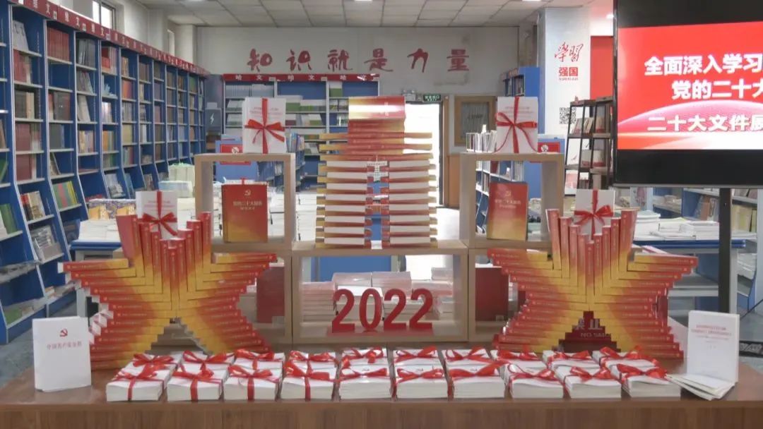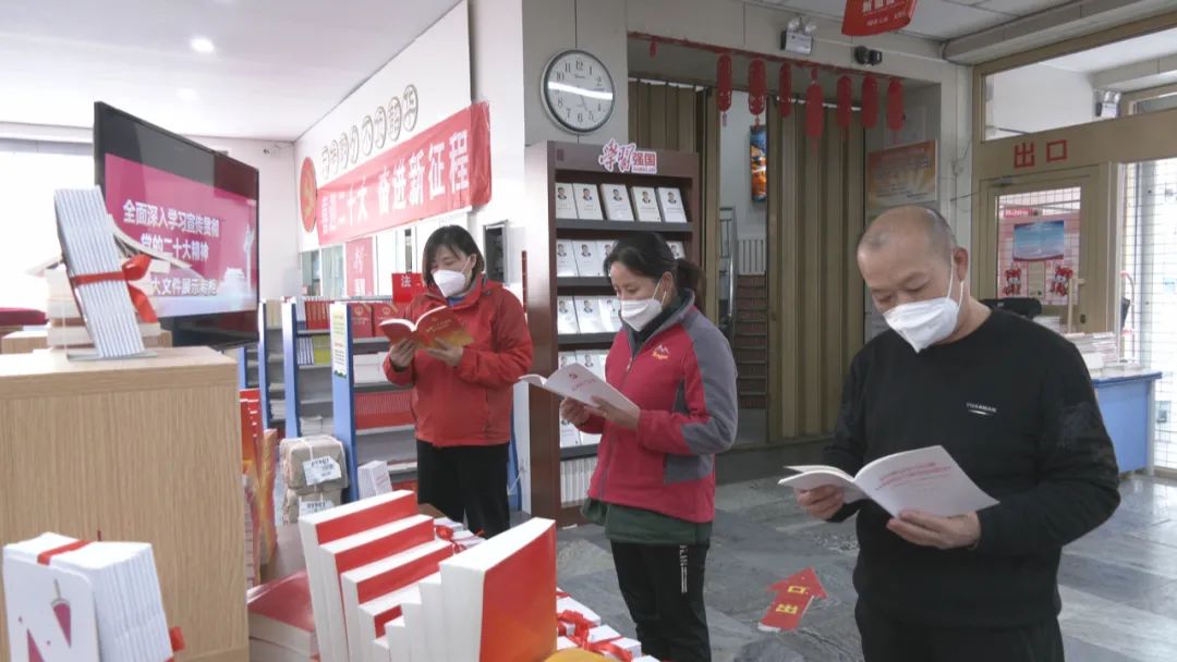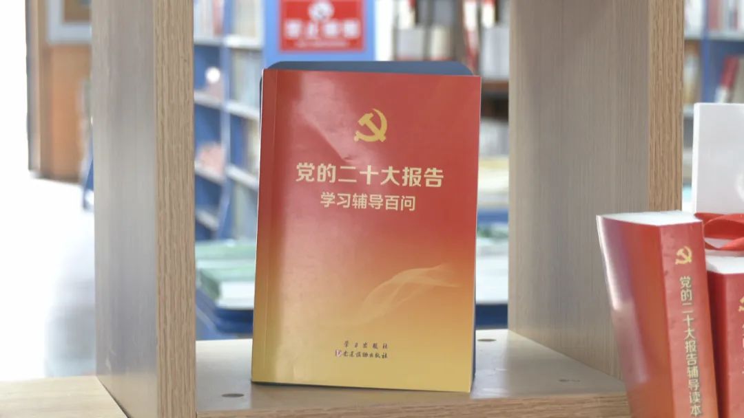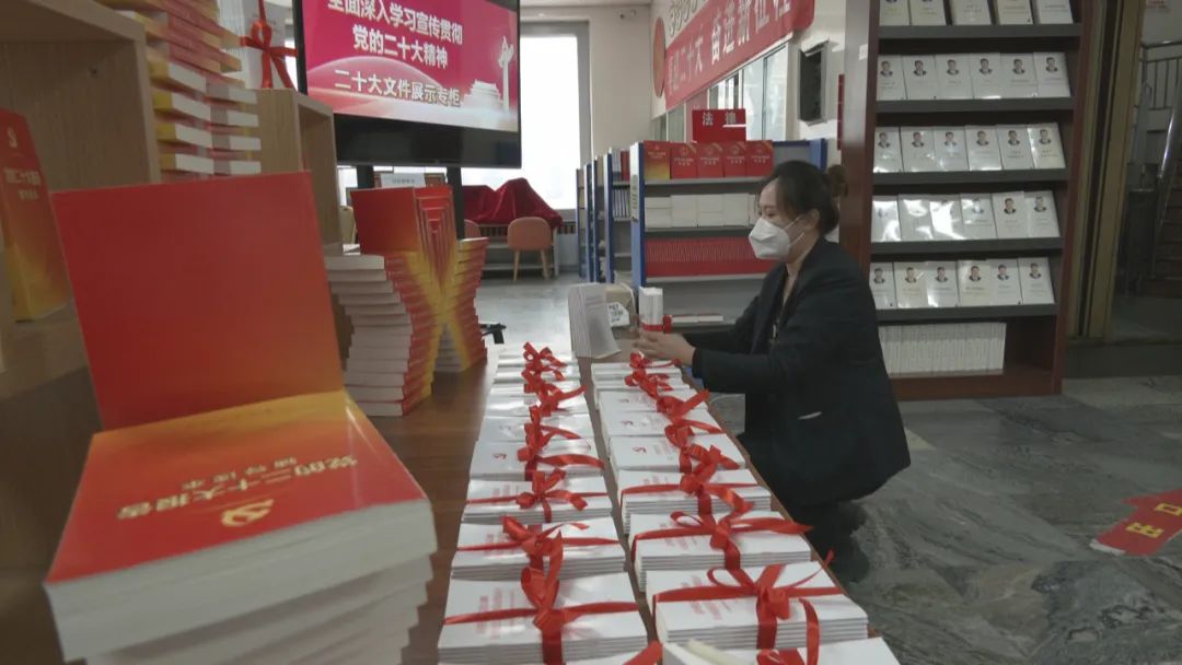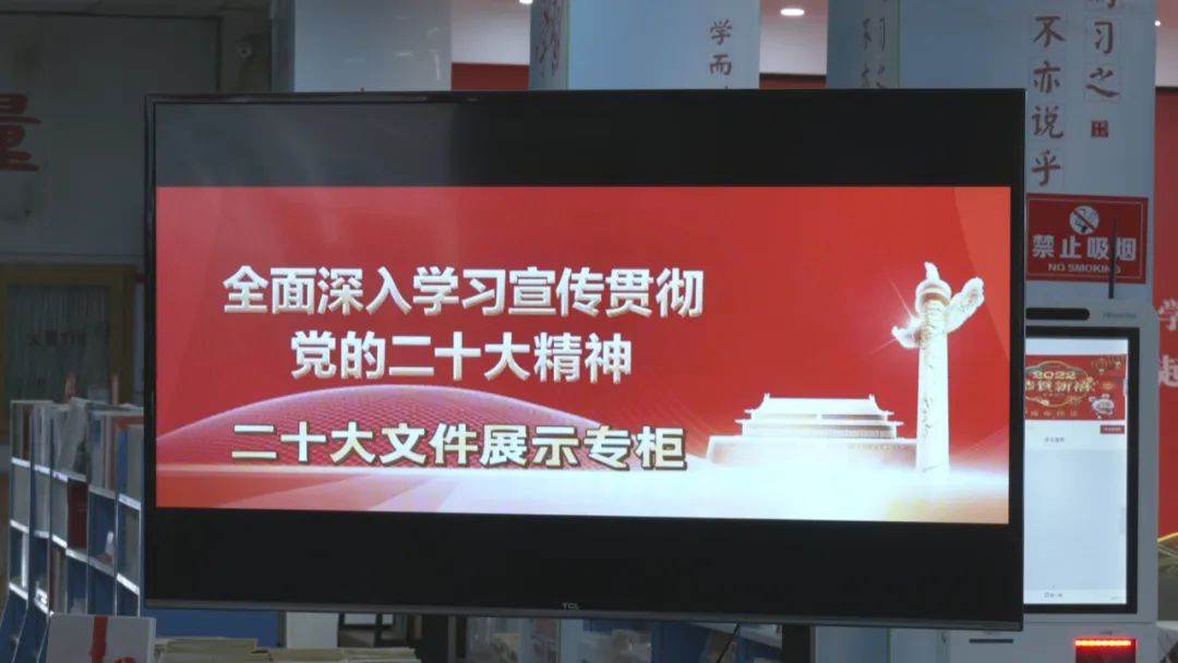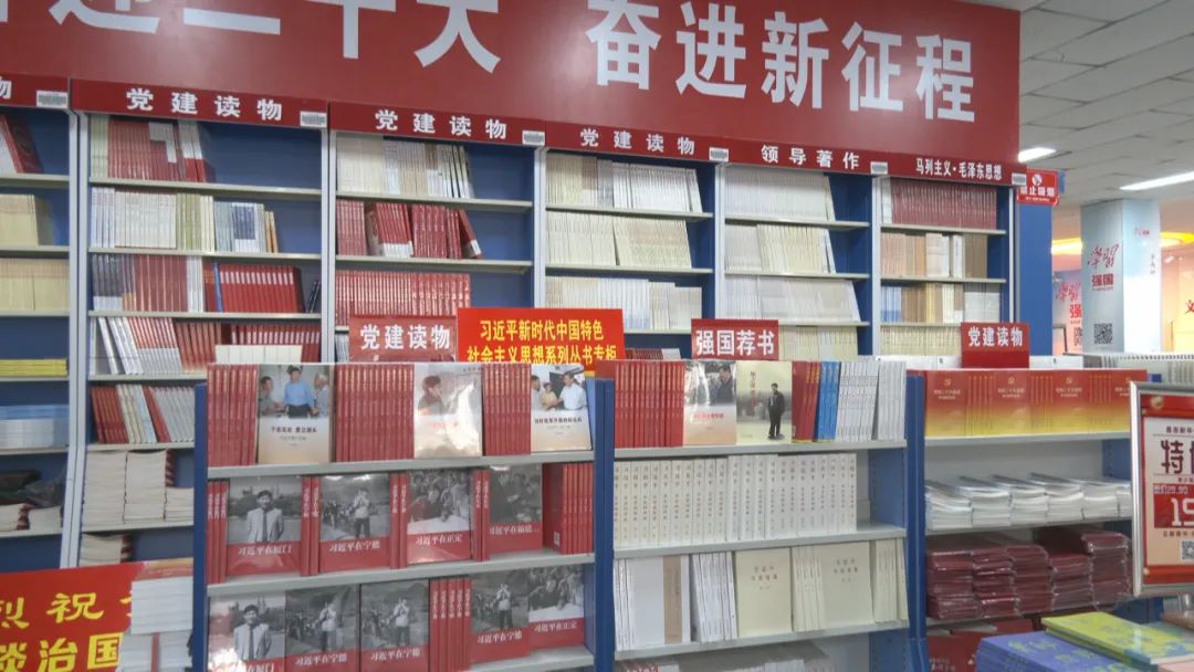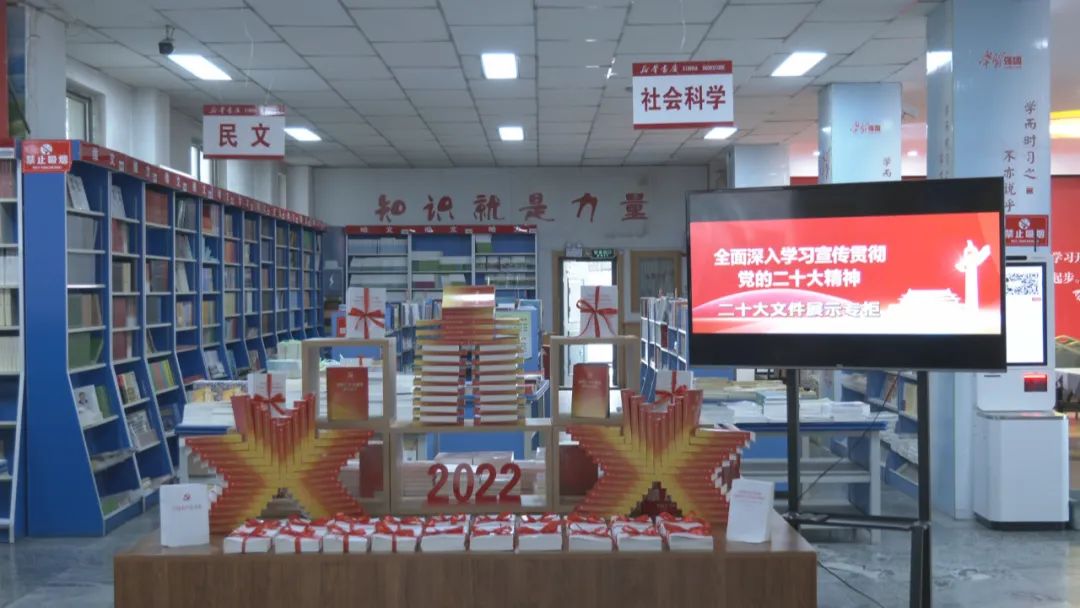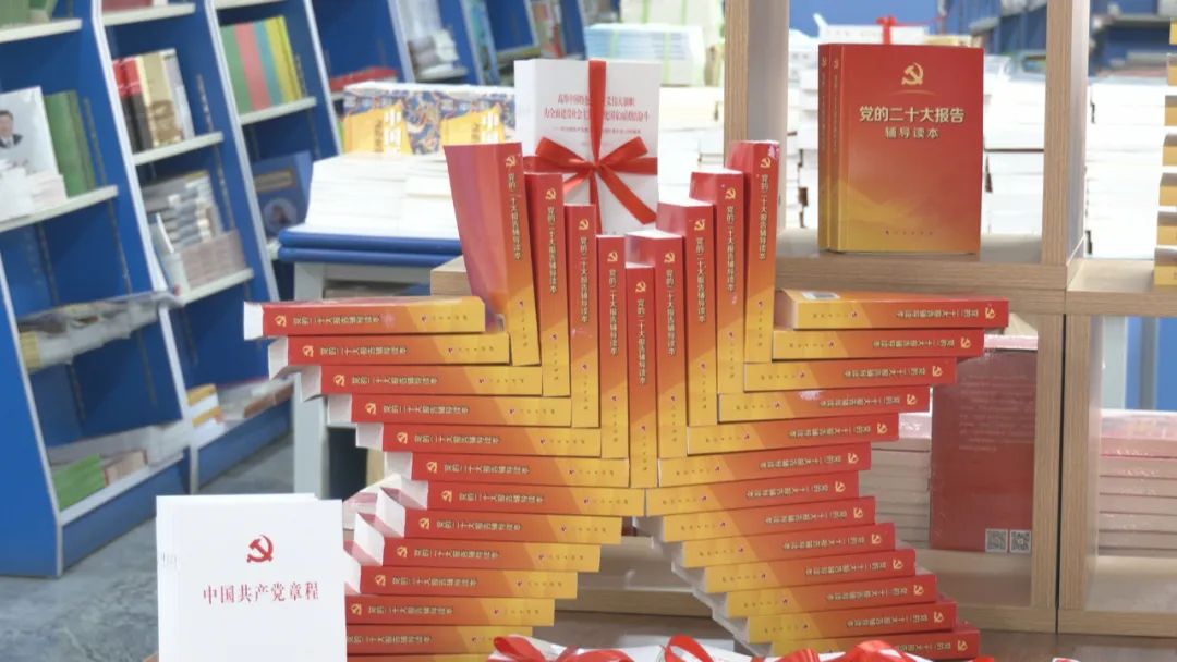 在位于昌吉市延安北路的新华书店,书店一楼大厅入口处专门开辟了主题出版物展示展销专区,设置了党的二十大主题出版物展台,并设计制作了专题电子展示屏。新华书店工作人员第一时间将《中国共产党章程》等单行本摆放在党的二十大文件及学习辅导读物专柜的显著位置 ,方便读者取阅、选购。