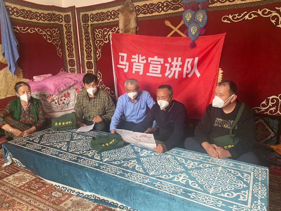 阿吾肯·萨合多拉居住在昌吉市庙尔沟村阿吾肯沟,距离市区97公里,由昌吉州人大代表、庙尔沟乡党委副书记、乡长阿得力,昌吉市人大代表、庙尔沟乡人大主席加尔恒别克,庙尔沟乡人大代表朱马太和牧民志愿者组成的马背宣讲队,专程来到他家宣讲党的二十大精神。宣讲队队员们围坐在毡房里,不仅用冬不拉弹唱的方式宣讲了党的二十大精神,还用平实质朴的语言,结合牧民的生产生活讲述过去十年党和国家事业取得的重大成就,逐字逐句为大家讲解与牧民生活息息相关的民生保障、促进就业、乡村振兴等党的二十大报告内容。阿吾肯·萨合多拉说,这种方式挺好的,我们学习了党的二十大精神,对今后的生活充满了信心。
