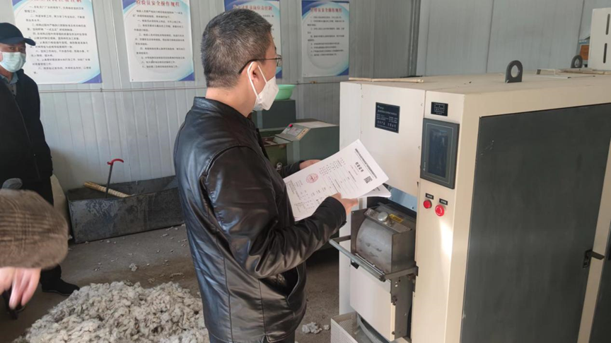 市市场监督管理局将学习贯彻落实党的二十大精神与当前的实际工作相结合,于近日开展“监管护棉”专项行动,对7家棉花收购加工企业进行专项检查,进一步加大棉花收购、加工与流通环节事中、事后监管力度。