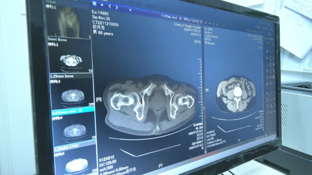 一大早,记者在市人民医院骨科看到,医生秦维龙和同事正忙着查看患者段开忠右腿髋关节骨质增生情况,交待注意事项。