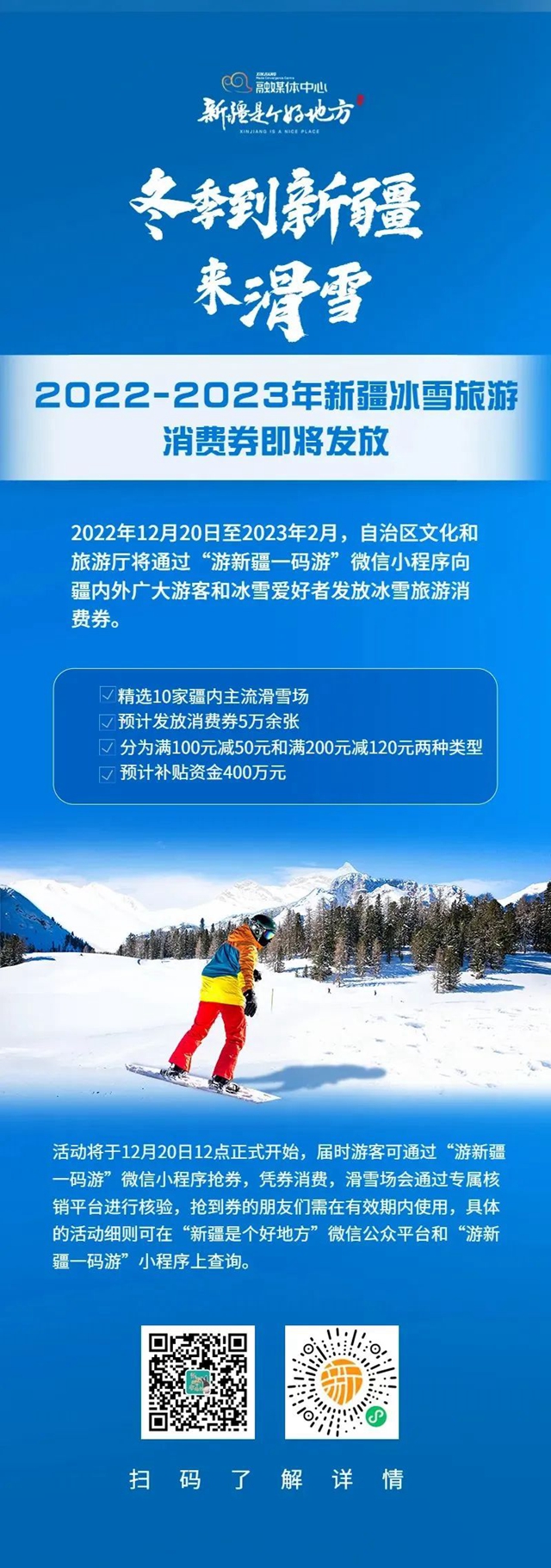 精选10家疆内主流滑雪场发放消费券