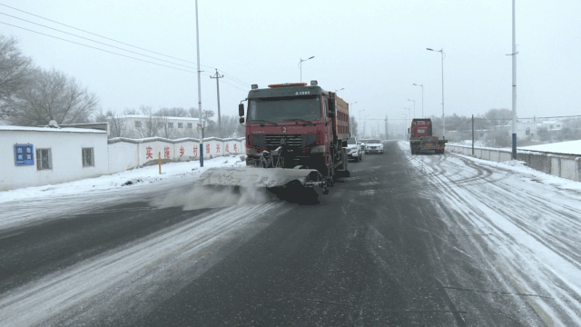 市农村公路养护管理站清雪车驾驶员潘存东说,大概扫了20公里到30公里路,从南往北扫,再从北往南扫,这样就彻底打扫干净了,路也不滑了。